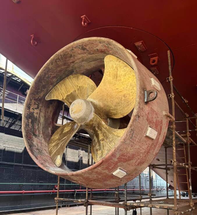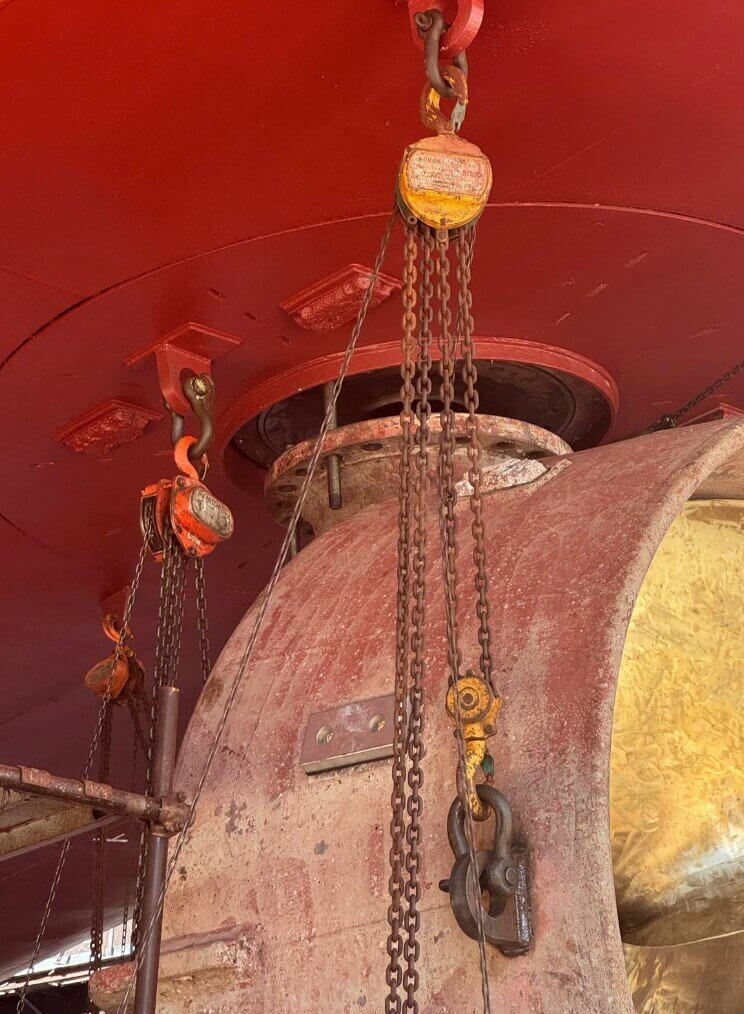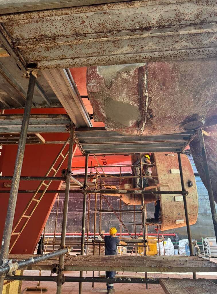 Qui l’intervento ha richiesto un approccio ancora più articolato. Le due Z-Pella Niigata, eliche azimutali complesse e delicate, sono state smontate, trasferite fino in Sicilia, lavorate in officina e reinstallate in tempi record: appena 21 giorni